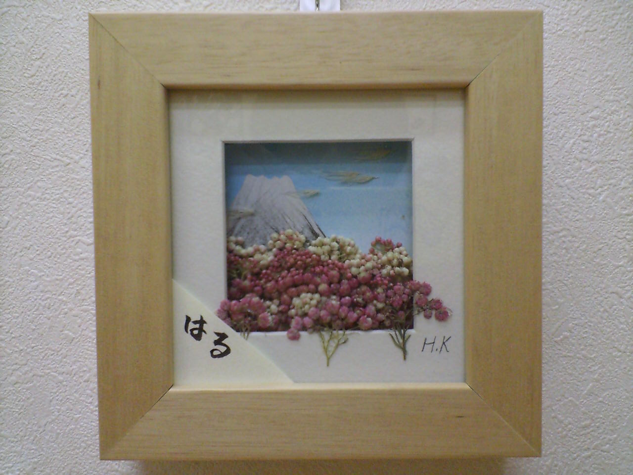 立体押花の駒形さんの富士山と桃の花をイメージした「春」